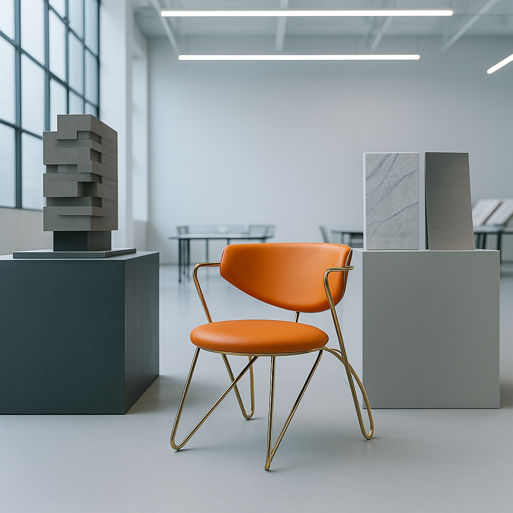 Verde Luxe Accent Chair with gold frame and wooden accent — a luxurious modern design blending comfort with sculptural elegance.