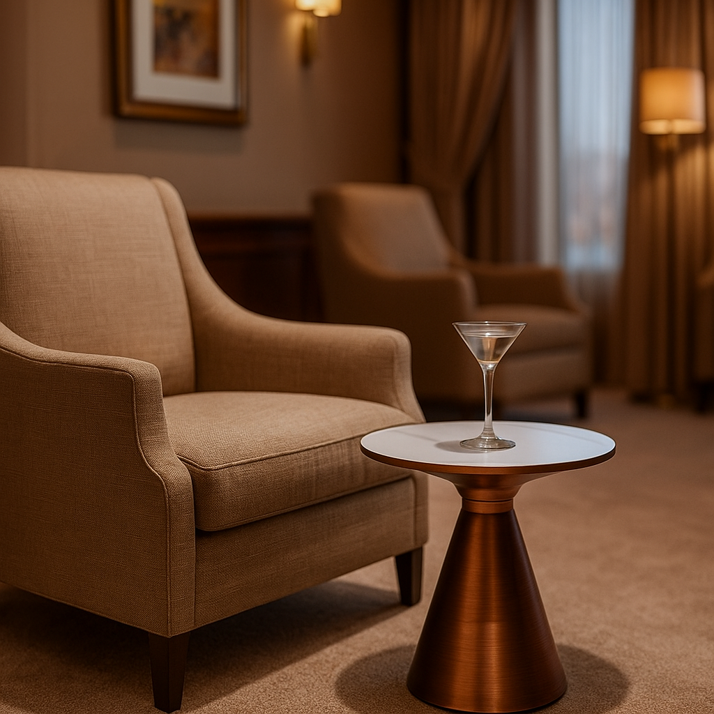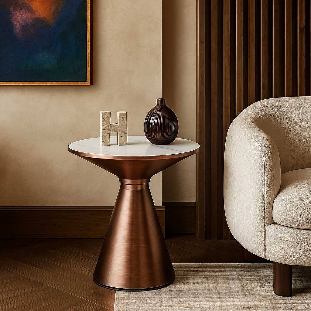 A graceful blend of rose gold elegance and ivory-white sophistication, the Ivory Charm Side Table adds a luxurious charm to any modern living space.