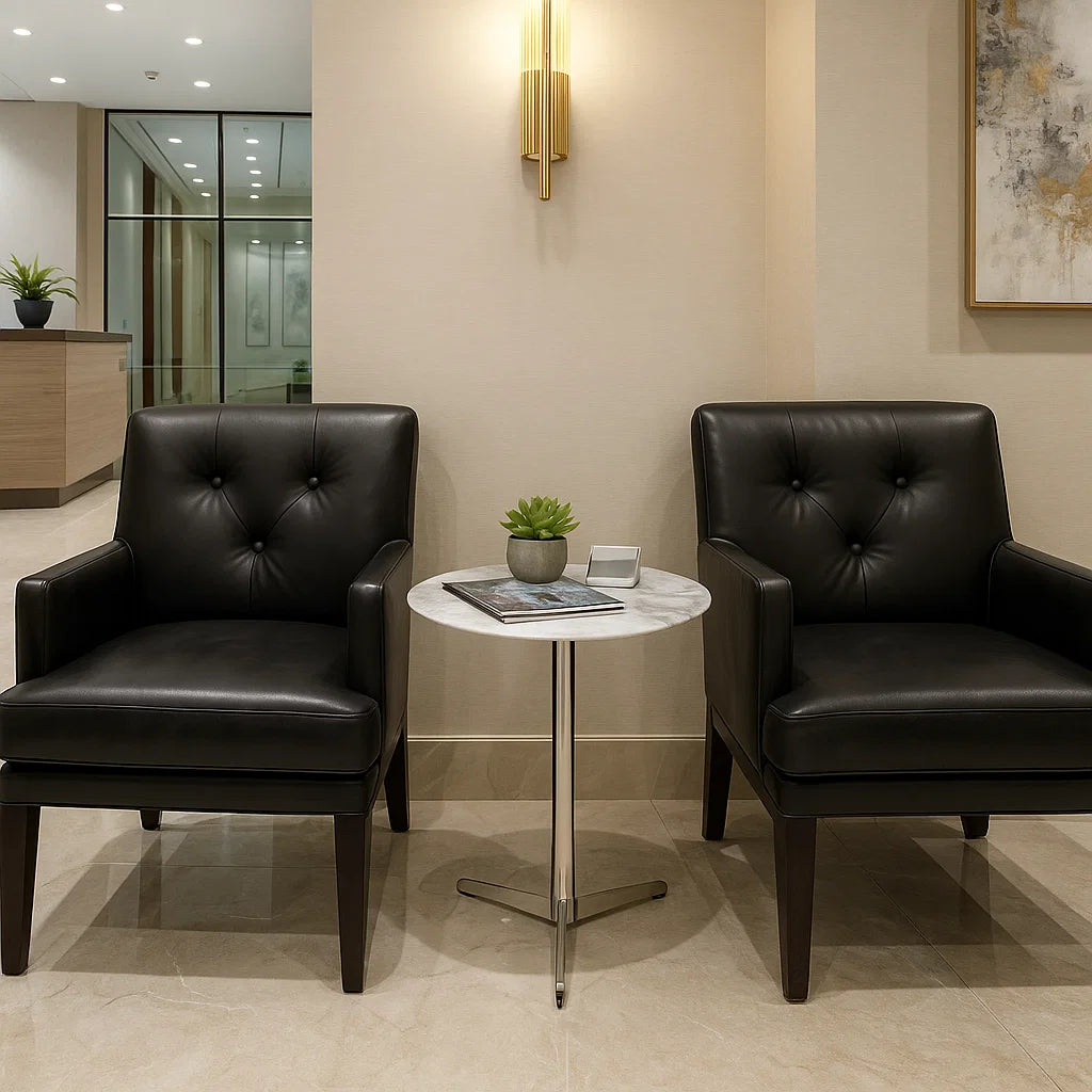 Luxurious marble side table with polished steel finish. Perfect for contemporary homes and designer decor.