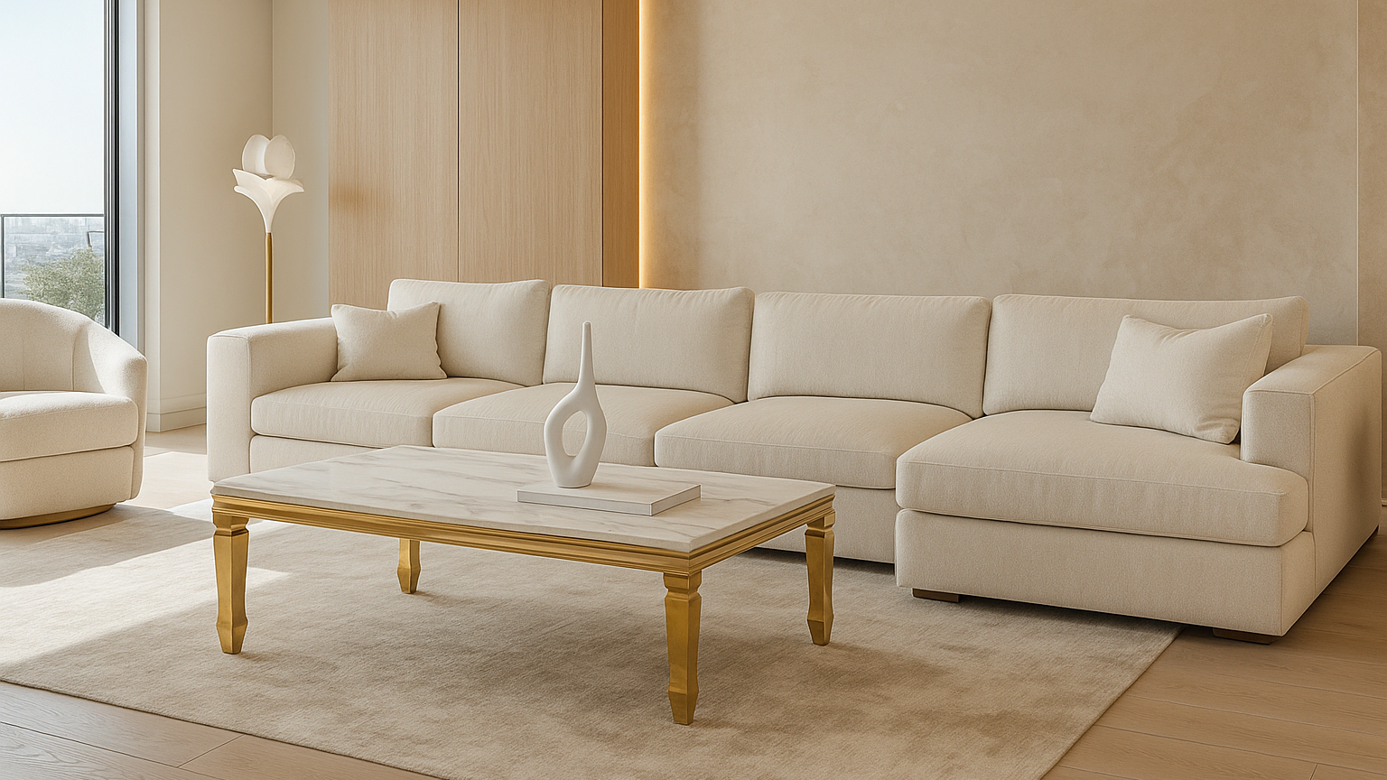 Stunning marble center coffee table duo with golden spiral frames – a statement for refined interiors.