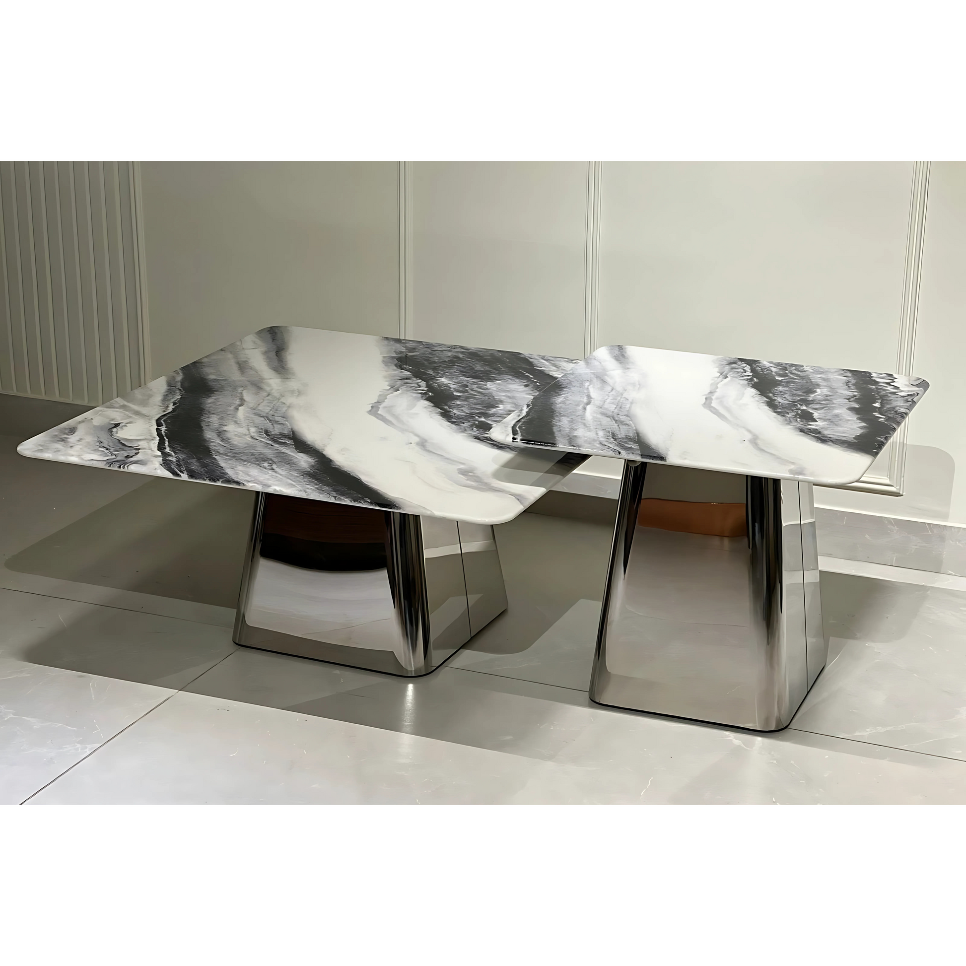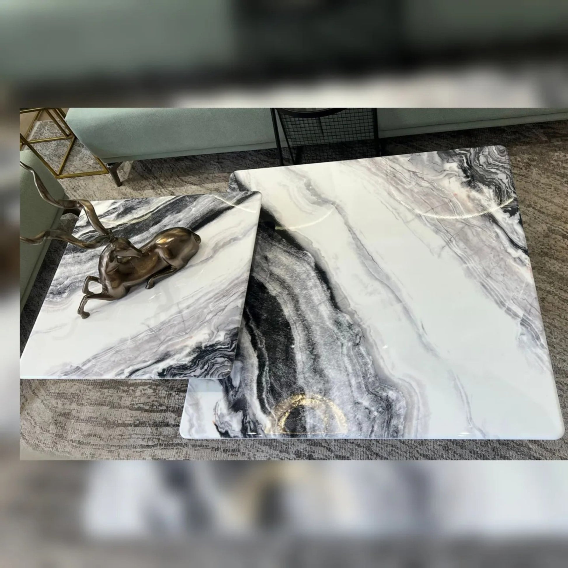 Enhance your living space with Lustra Bianco Center Coffee Table Featuring elegant black & white marble tops and a polished chrome base. Perfect for luxury interiors with timeless appeal.