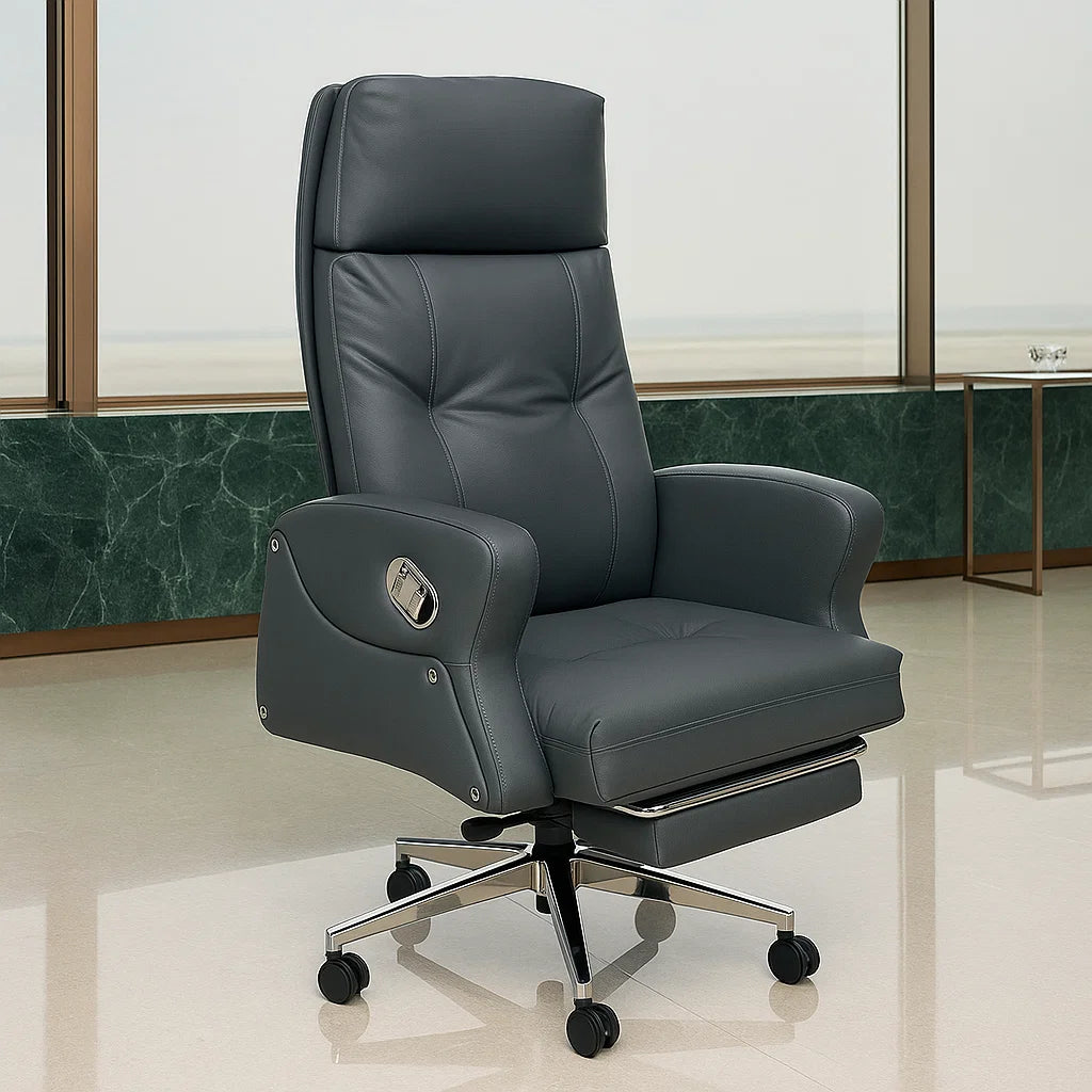 Zelaro Executive Boss Chair with premium leatherette, extendable leg rest, ergonomic high-back comfort & swivel base. Luxury chair for leaders.