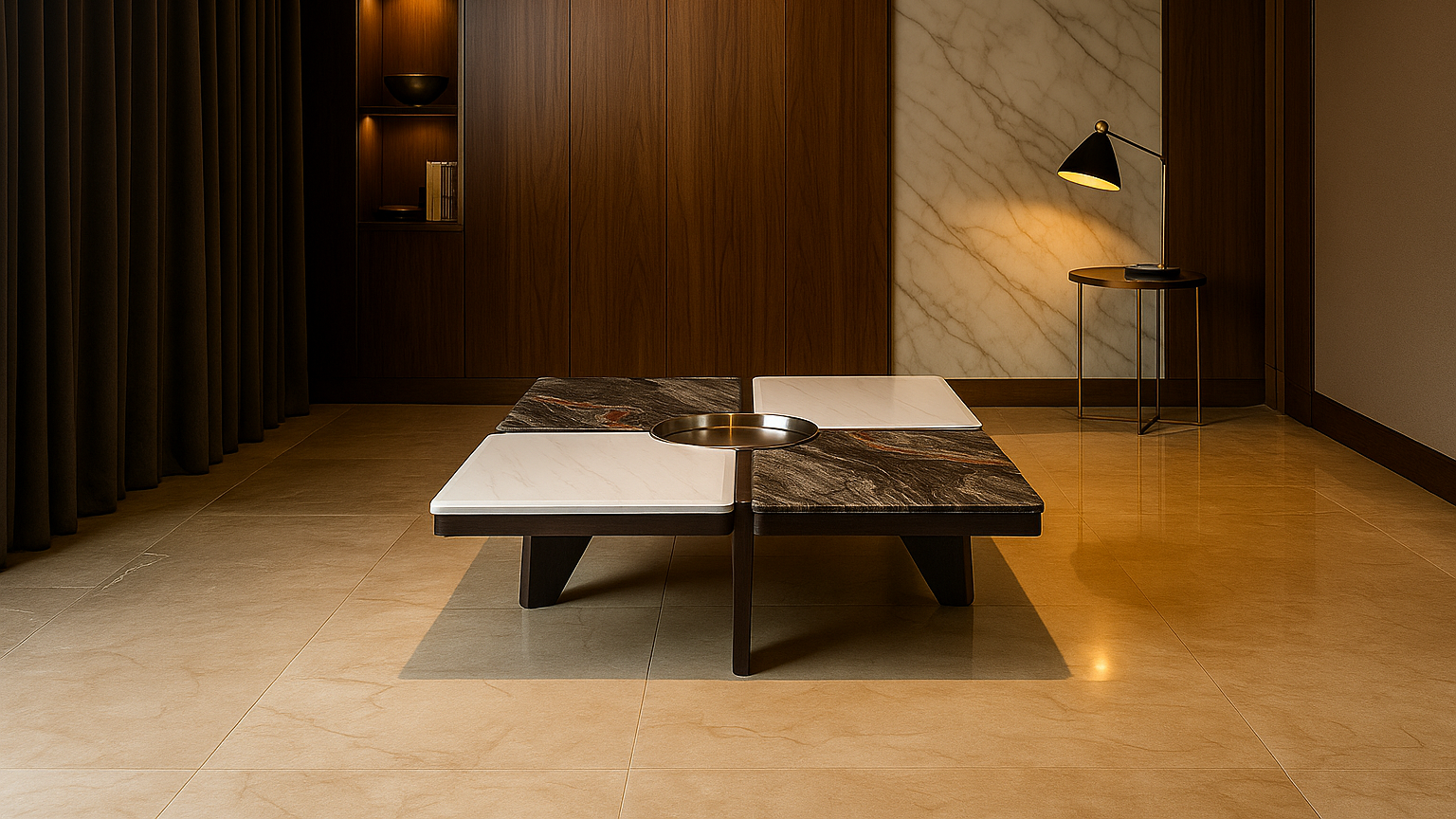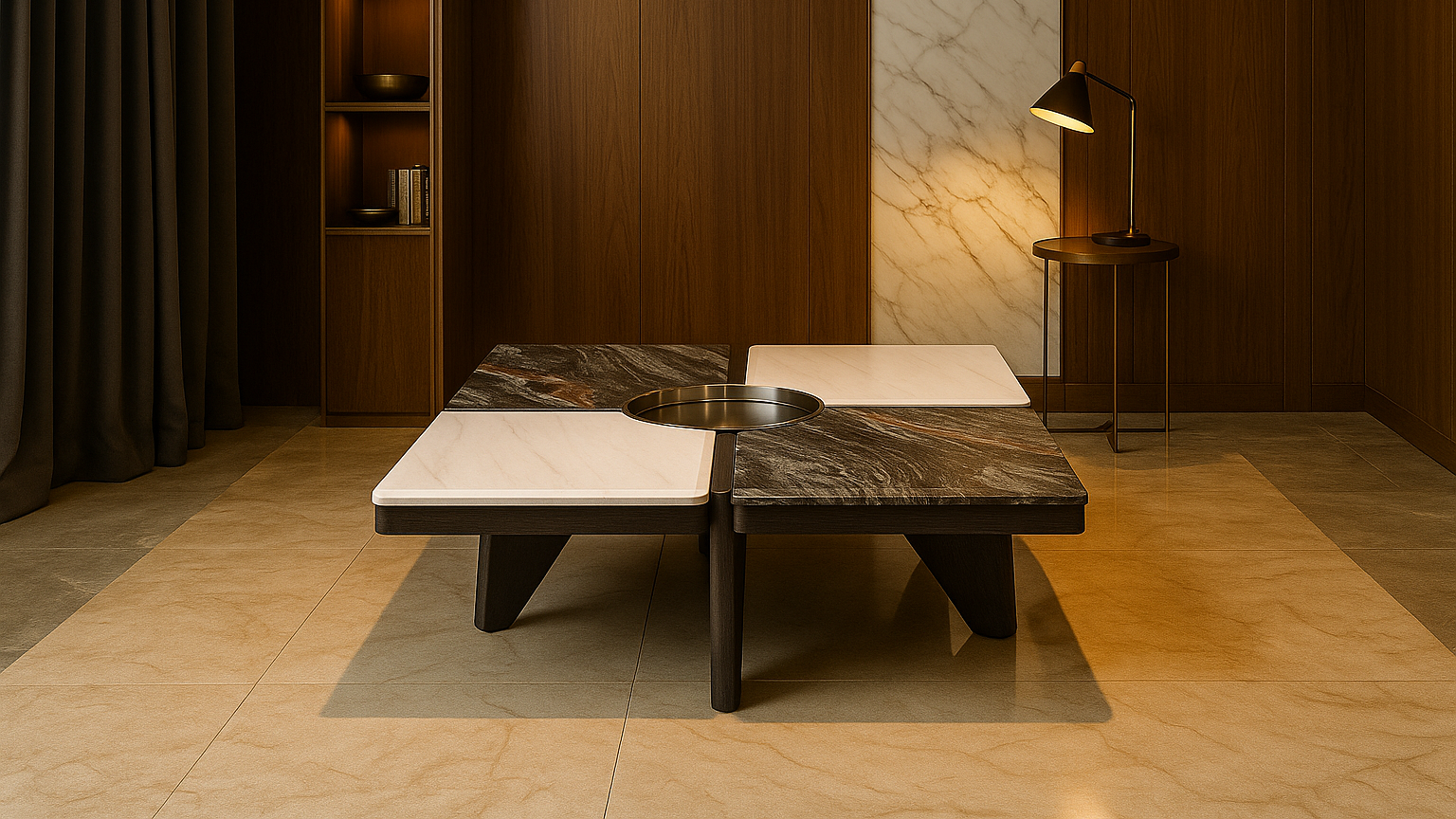 Luxe Quadrant Marble Center Coffee Table - Designer marble table with multi-tone finish for a luxurious look.