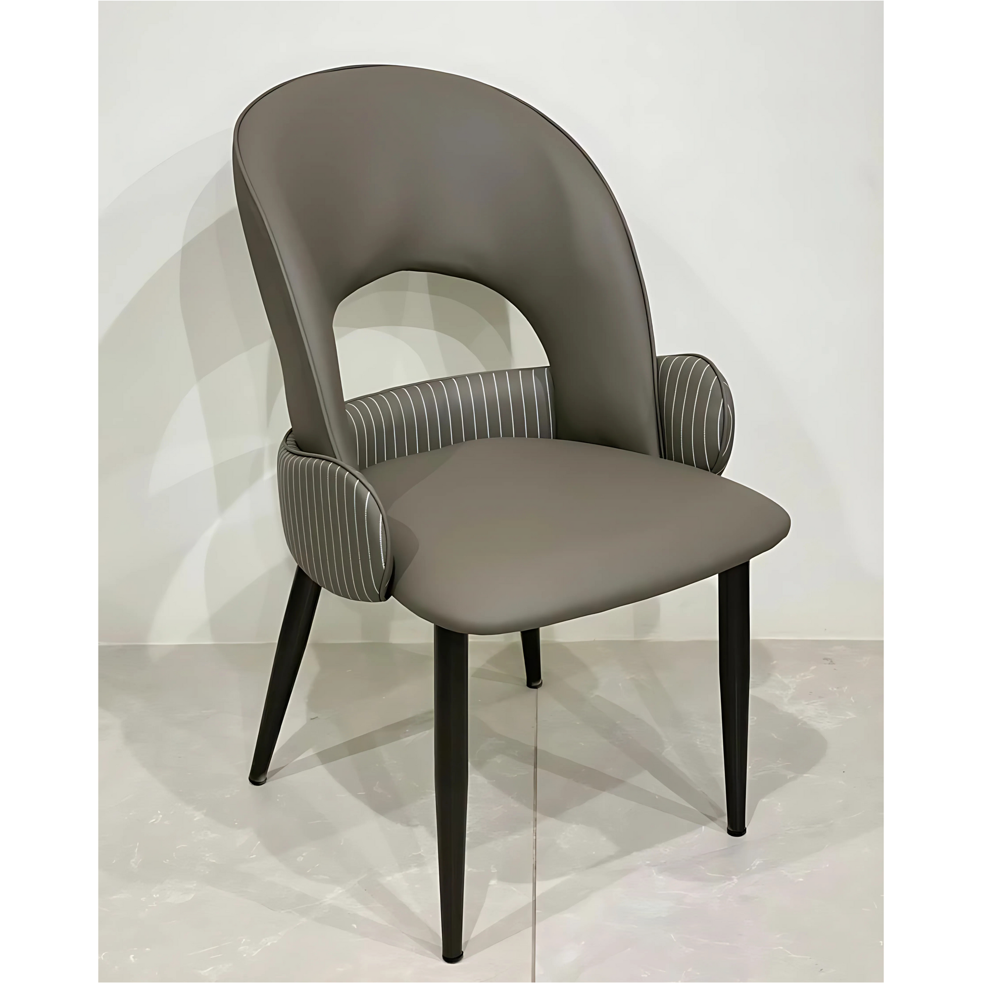 Elegant arched dining chair with pinstripe side detailing and black tapered legs — a refined piece for luxury dining interiors.